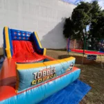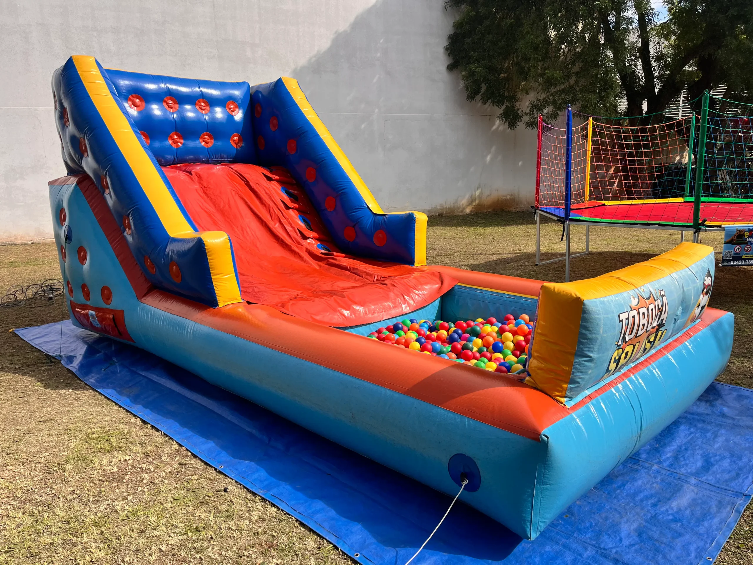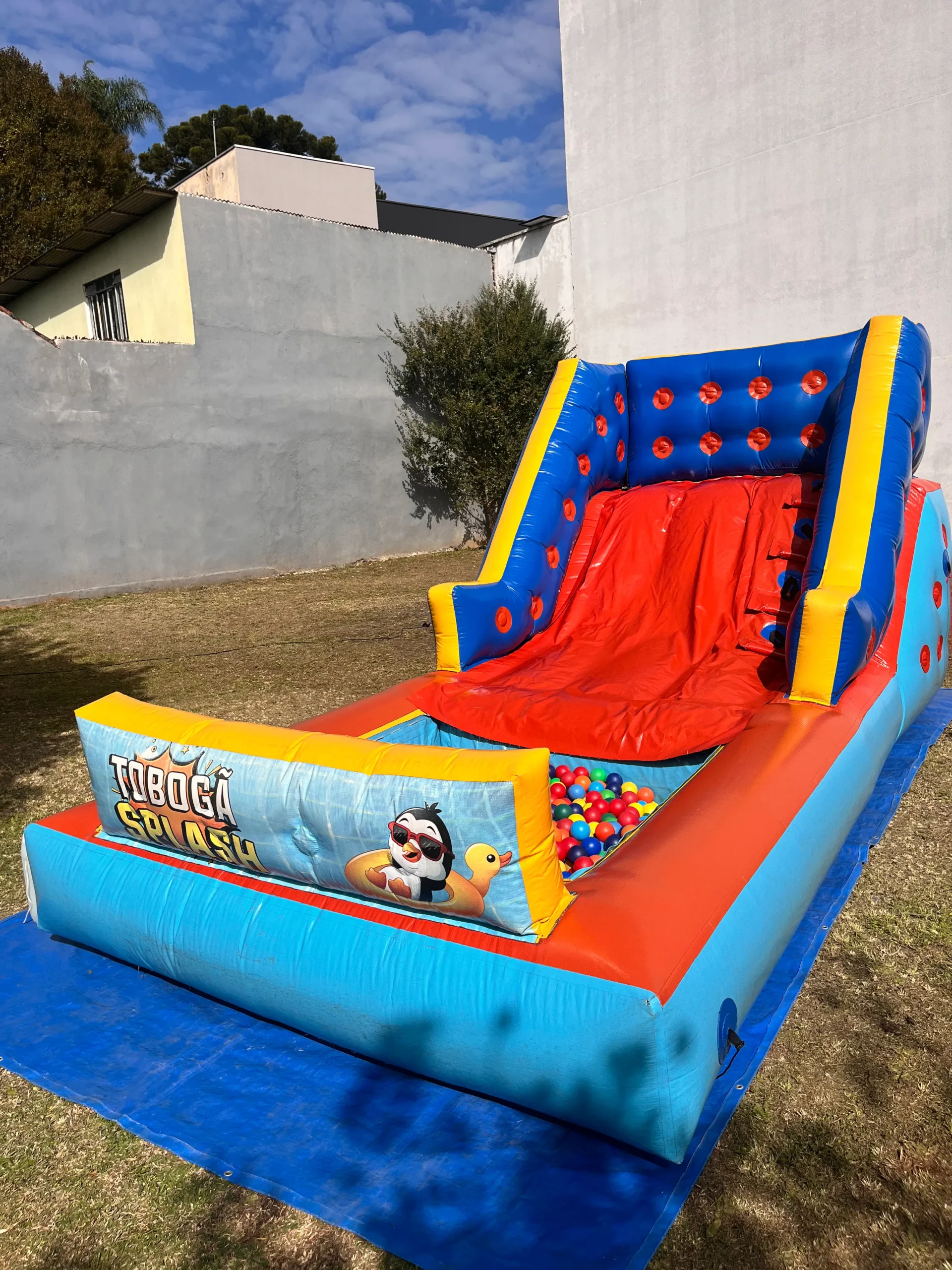 Colorido, seguro e com escada lateral com agarradores, é ideal para festas, escolas, igrejas, empresas e condomínios e casas.